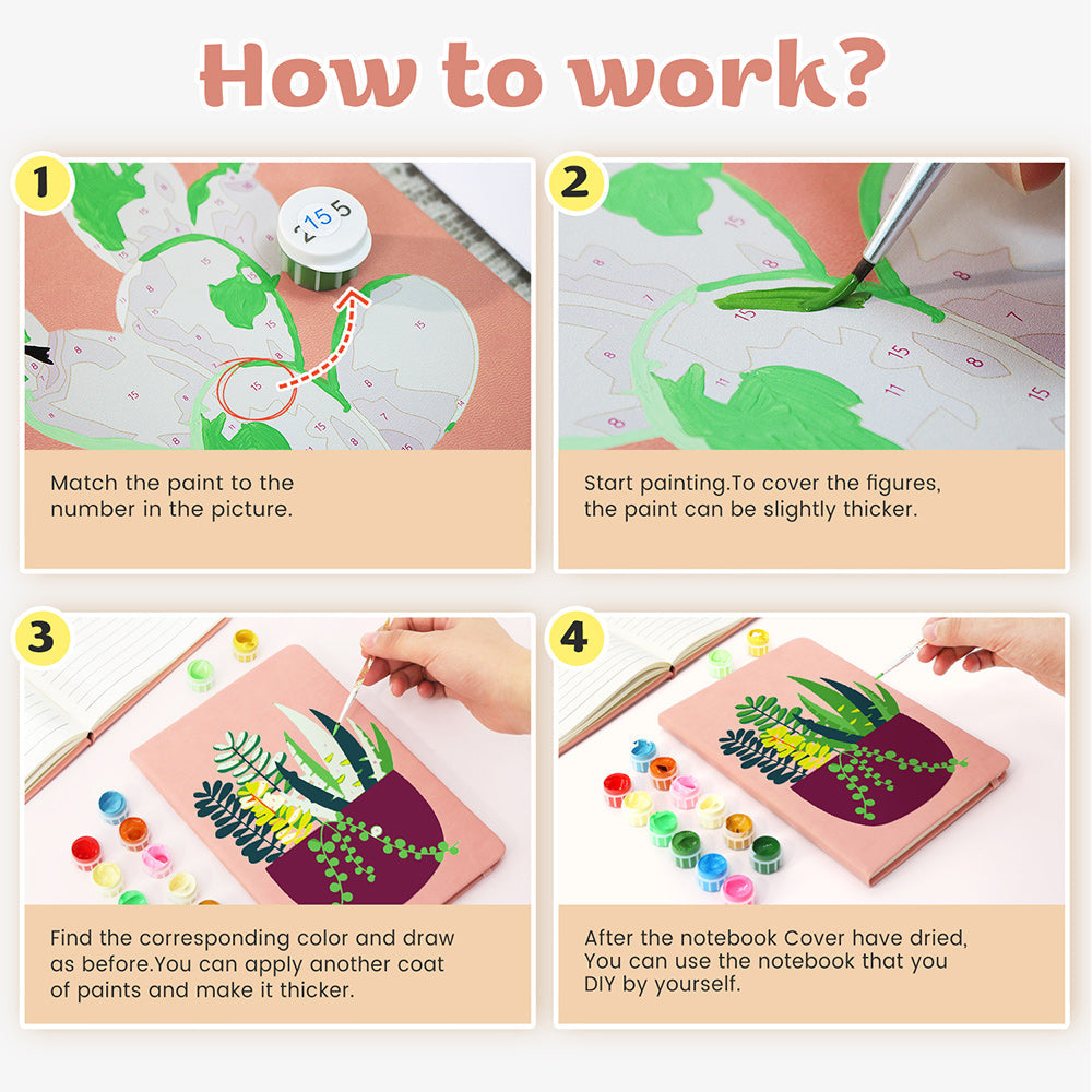 Emerald Green Potted Plants Notebook Paint by Numbers