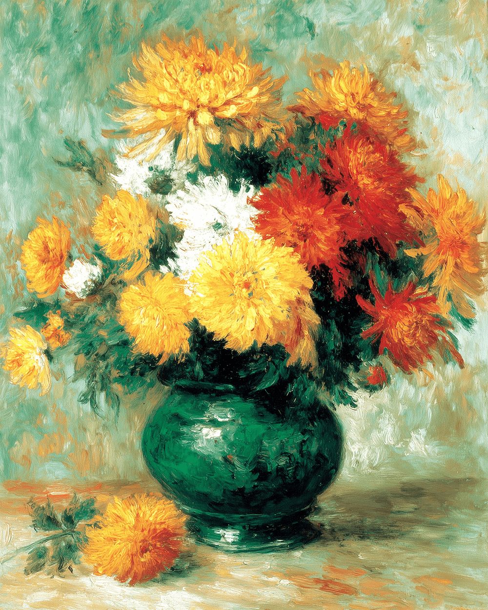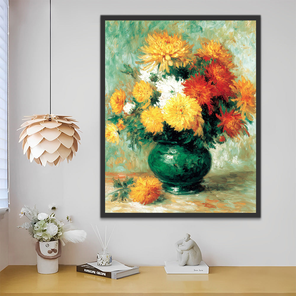 Colorful Chrysanthemums in Full Bloom in A Green Porcelain Vase Paint by Numbers