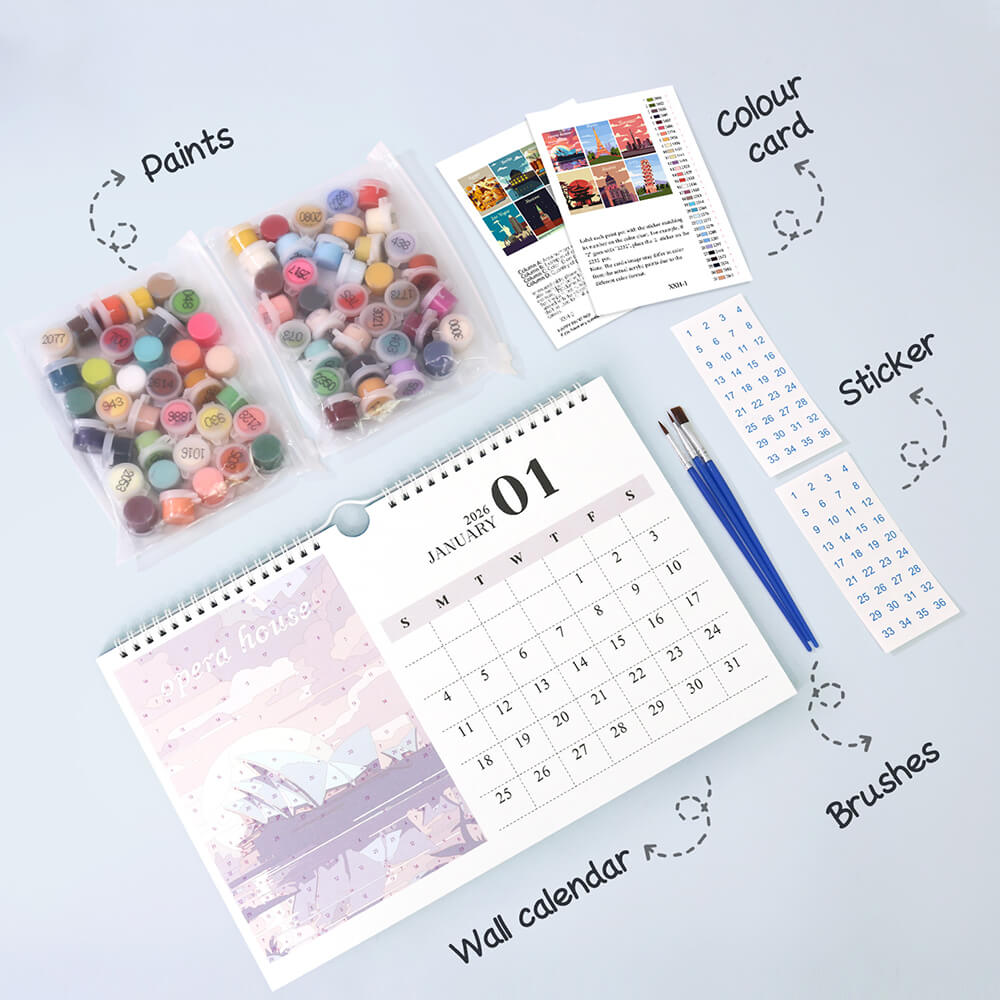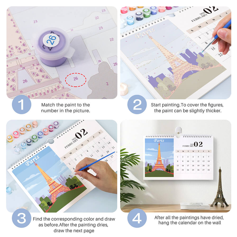 2026 Wall Calendar Paint by Numbers | Famous City Landmarks
