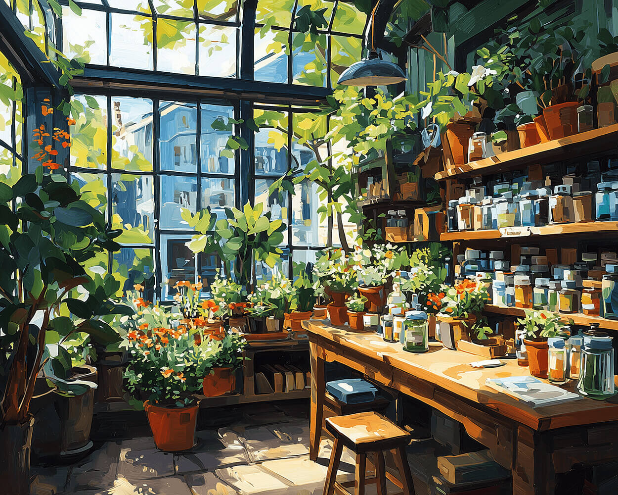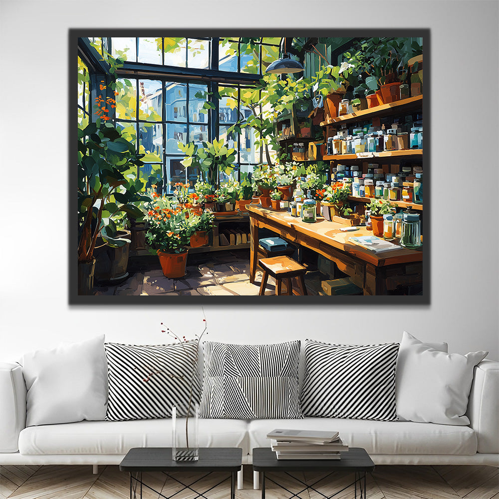 A Paint Storage Room filled with Green Plants Paint by Numbers