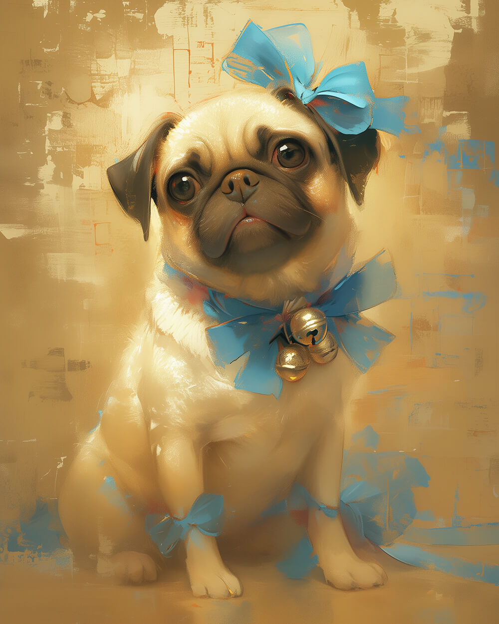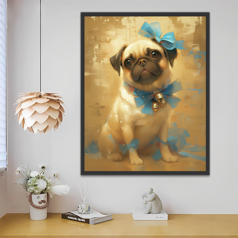 Pug Dog with Blue Bow Ribbon Paint by Numbers