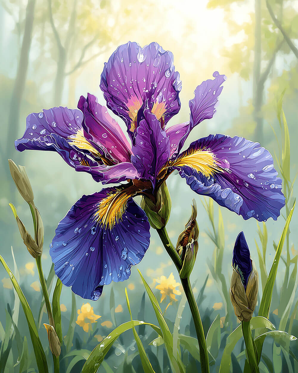 A Purple Iris Flower with Dew tn the Wild Paint by Numbers