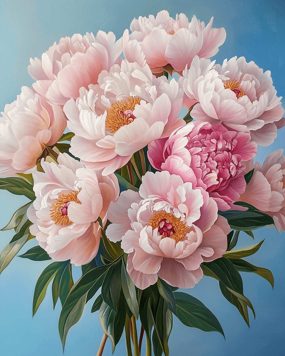 Bouquet of Pink Peonies with Green Leaves Paint by Numbers