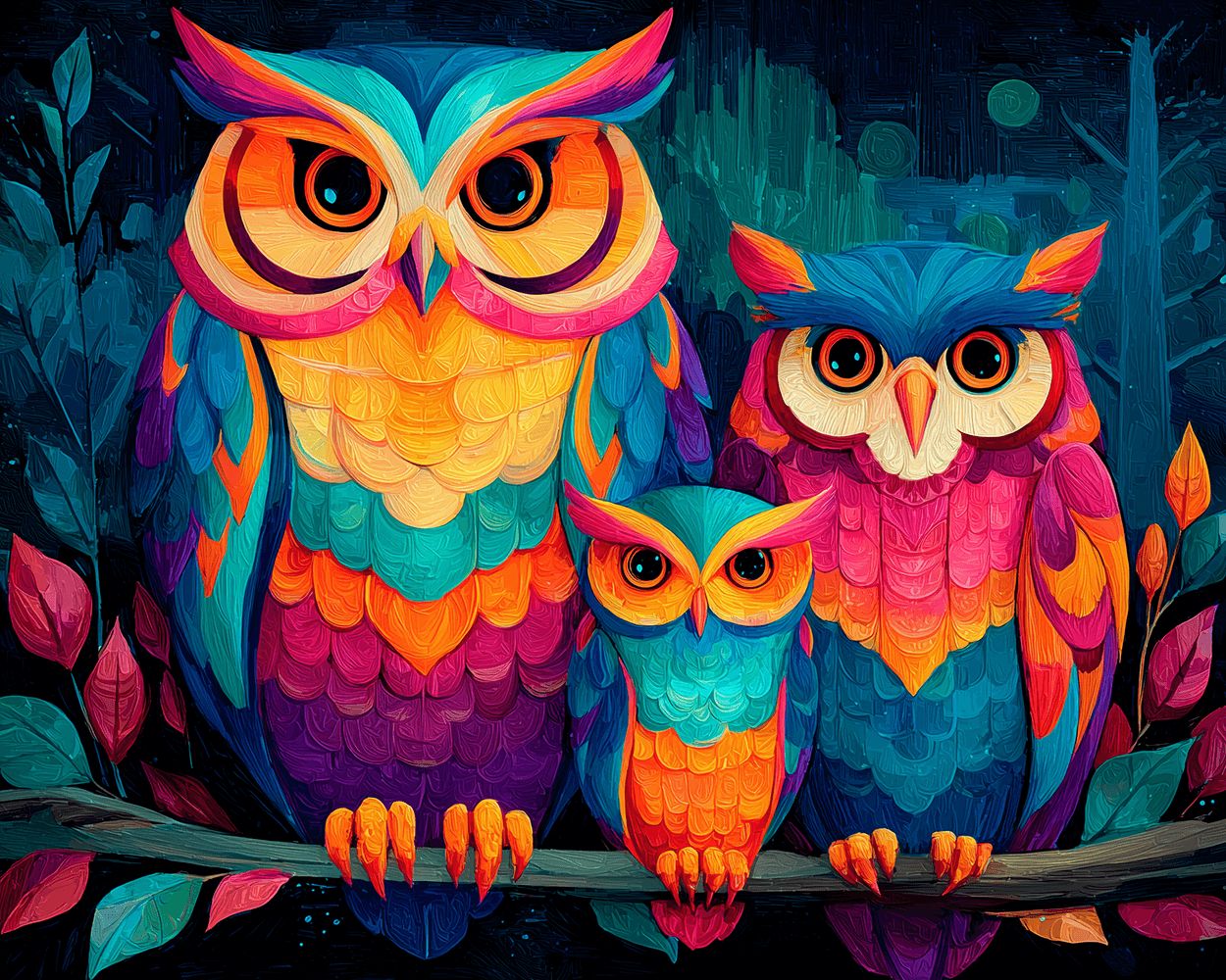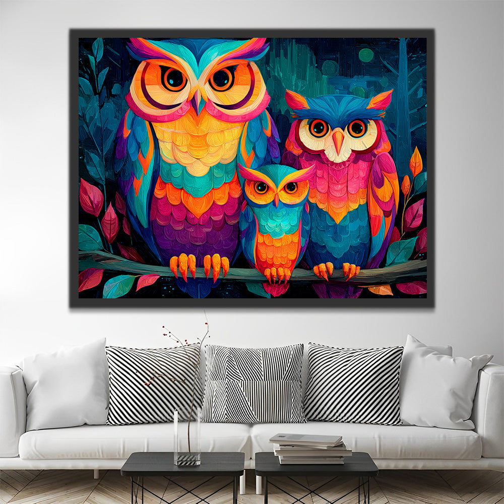 Colorful Owl Family of Three Paint by Numbers