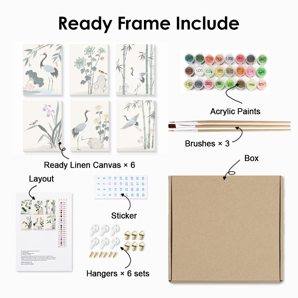 Ink Painting of Cranes and Bamboo 6 Pieces Mini Paint by Numbers