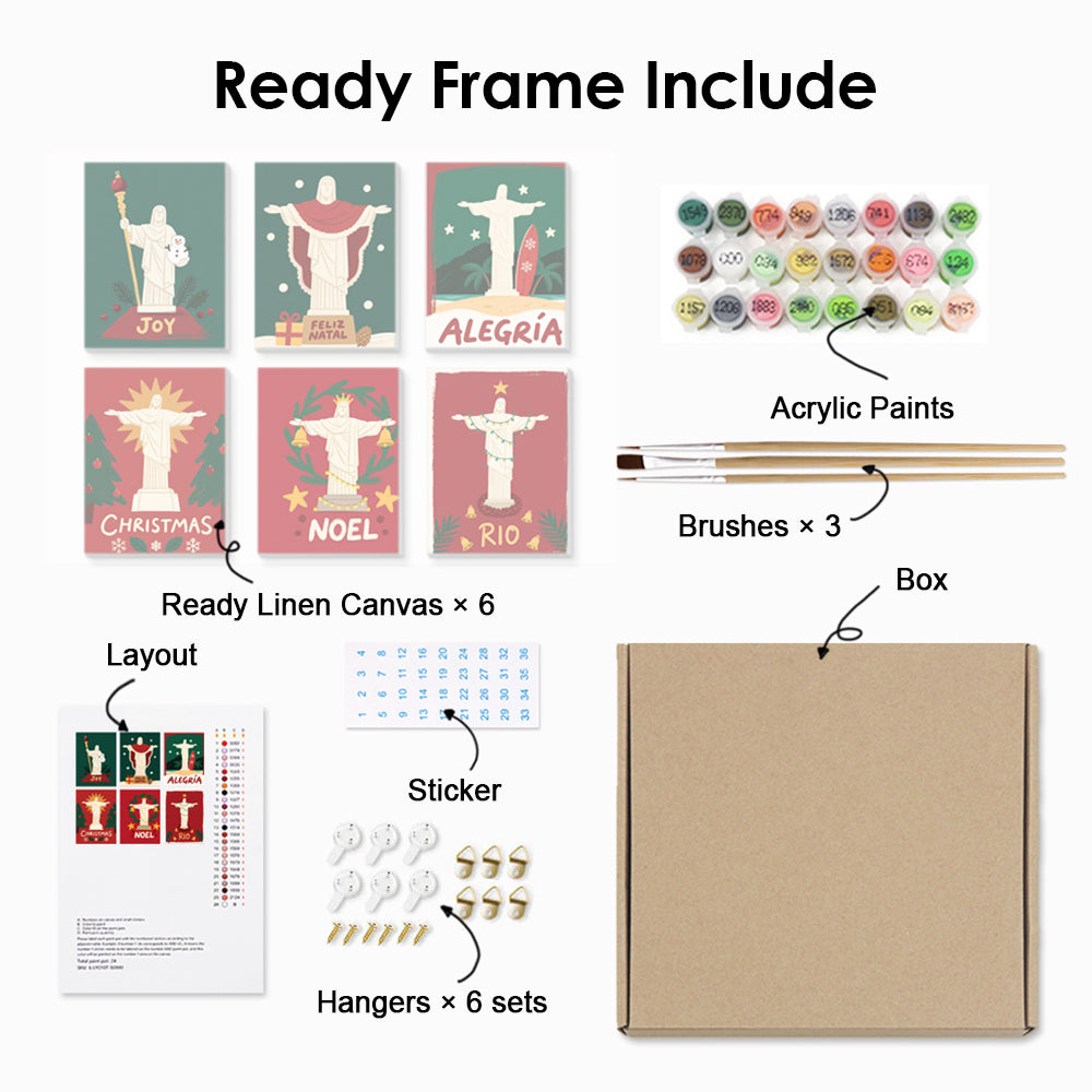 Christ Statue at Christmas 6 Pieces Mini Paint by Numbers