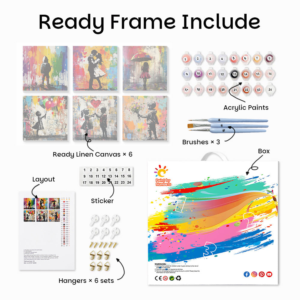 Graffiti Style Couple and Children 6 Pieces Mini Paint by Numbers