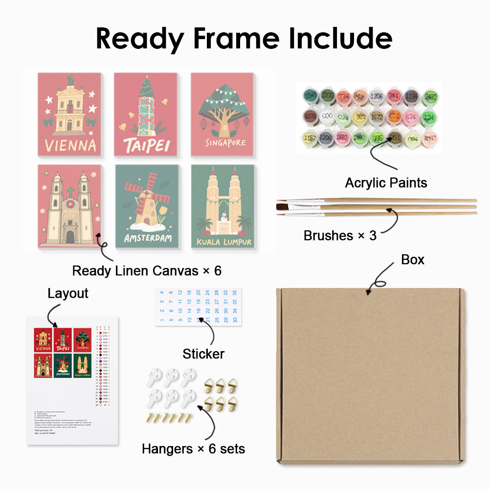 Landmarks around the World Celebrate Christmas 6 Pieces Mini Paint by Numbers