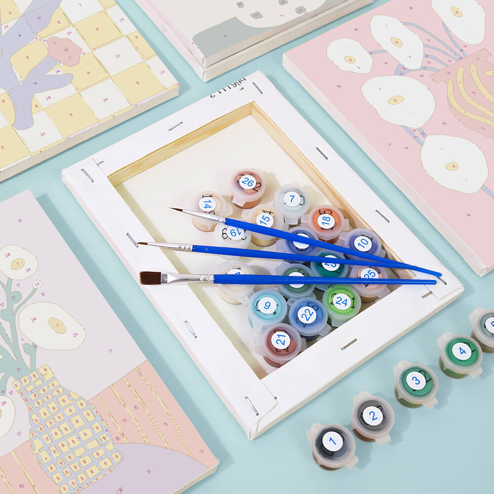 Paint by numbers is easy and anyone can do it. Each area on the canvas is numbered and corresponds to a specific colour. There is no need to mix the colours, just use the brush to colour in the appropriate areas. You can also decide the order of coloring according to your wish. Finally, you will create your own piece of artwork that you can be proud to show off to your family and friends.