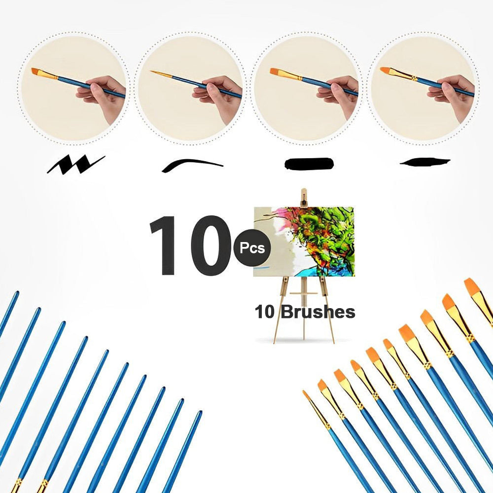 10 Brushes for Acrylic Paint - Different Sizes and Shapes