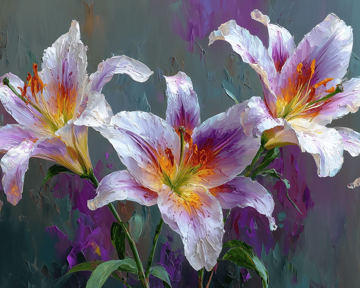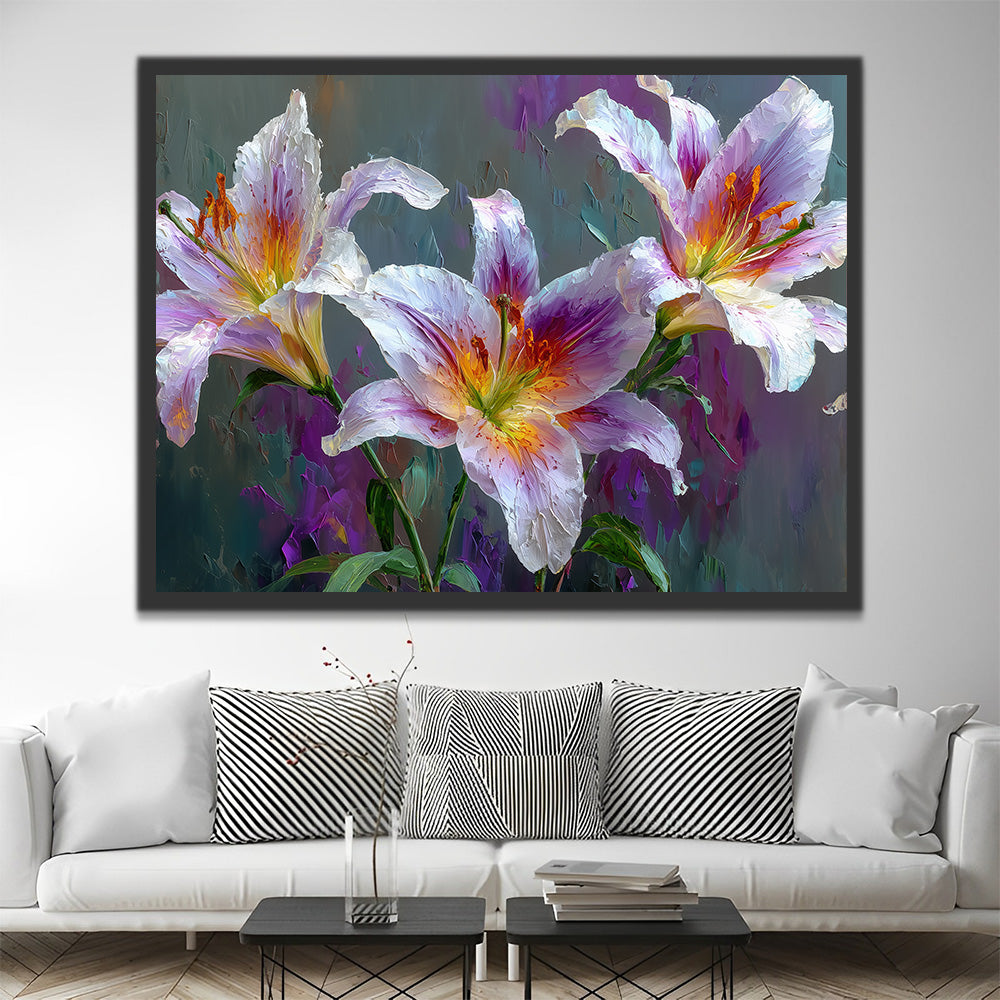 Three White and Purple Lilies Paint by Numbers
