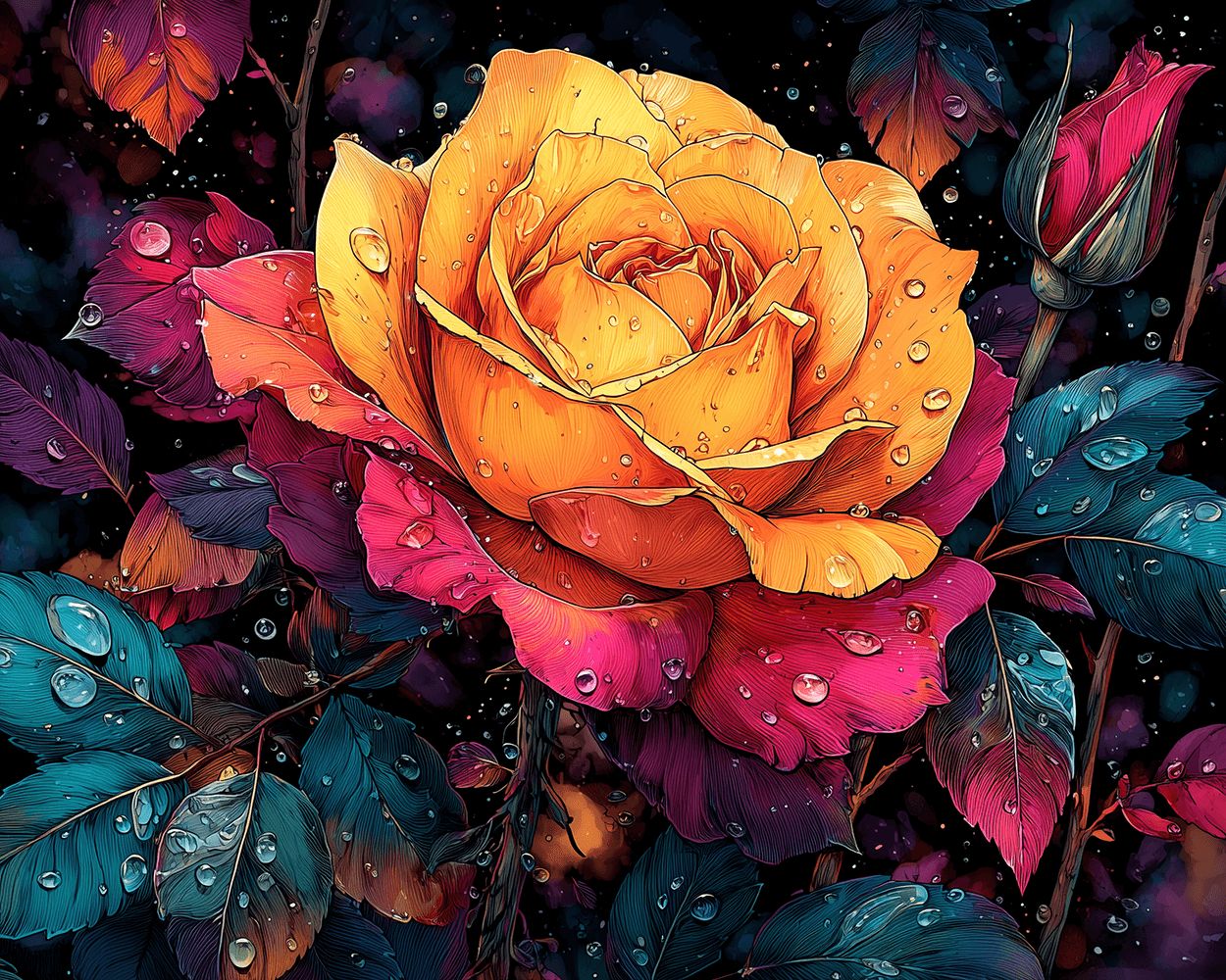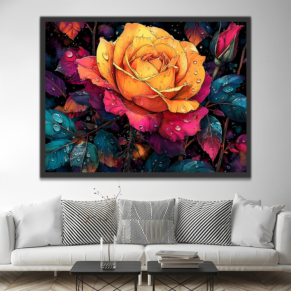 A Red and Orange Rose with Dew Drops Paint by Numbers