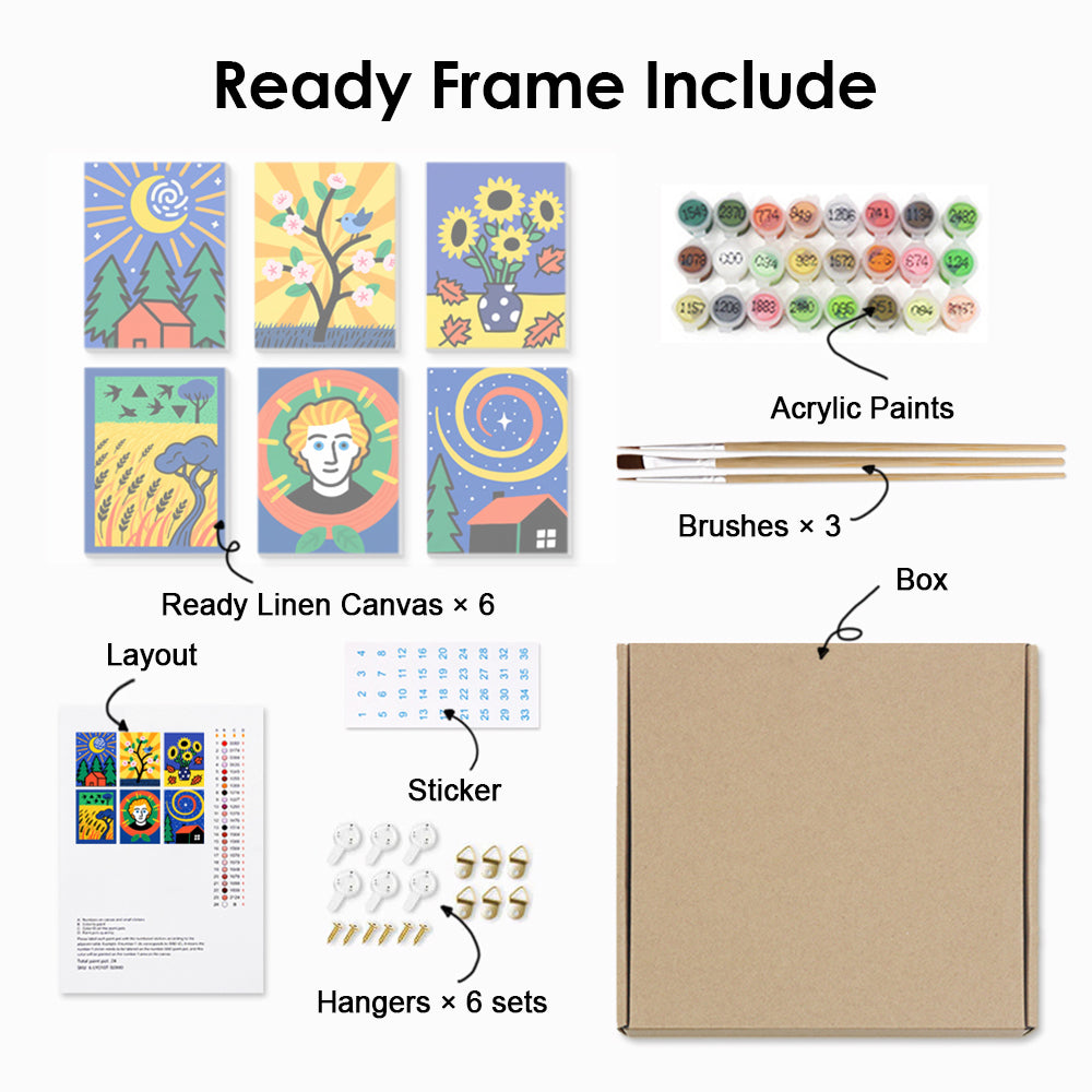 Cartoon Version of Van Gogh's Paintings 6 Pieces Mini Paint by Numbers
