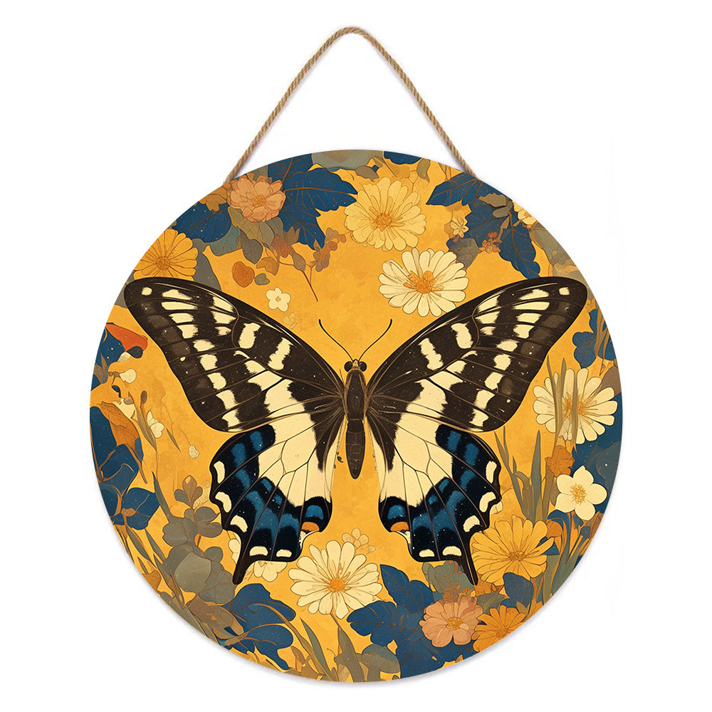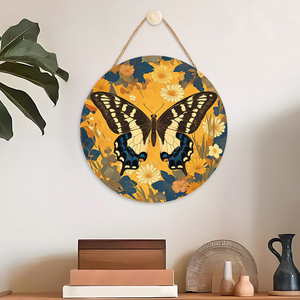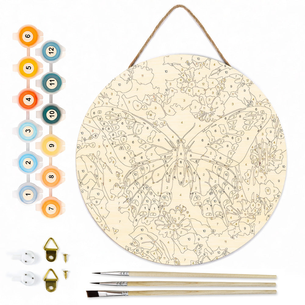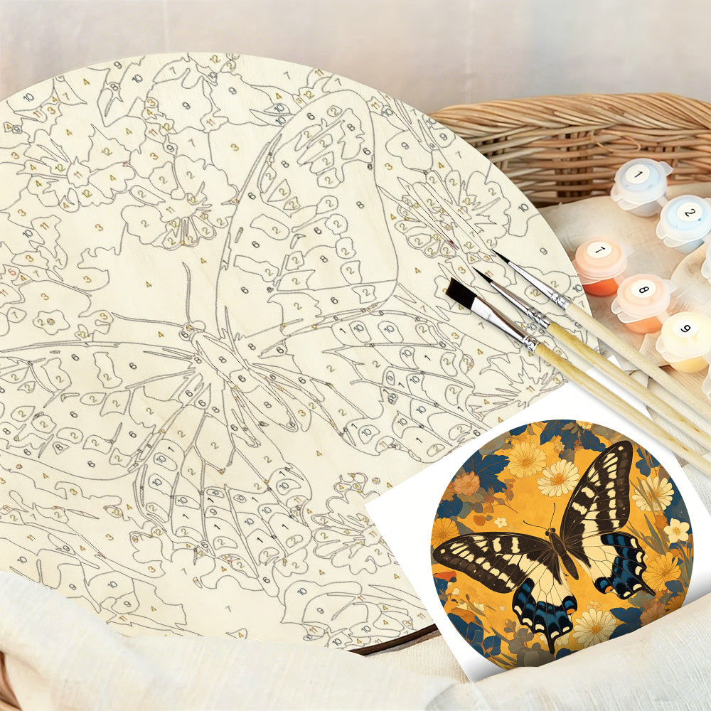 Paint by Numbers on Wood Slice - Autumn Butterfly and Flowers