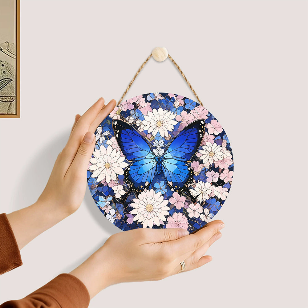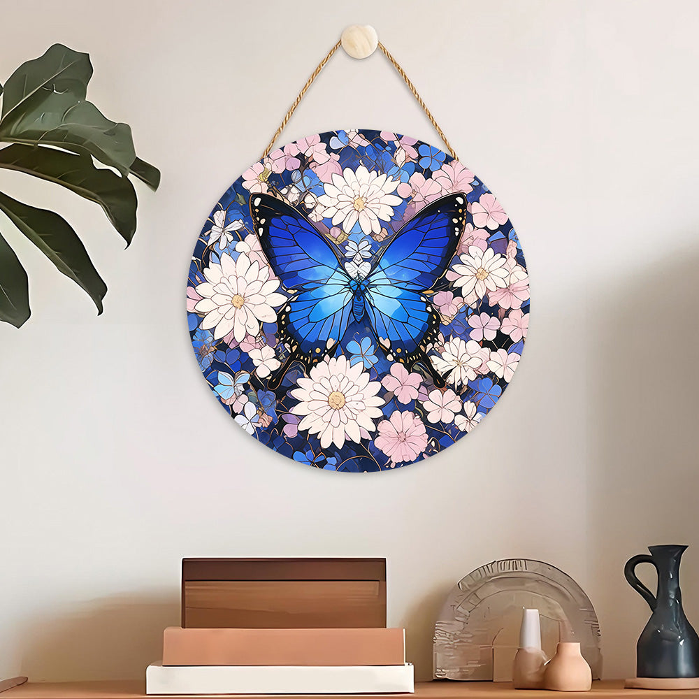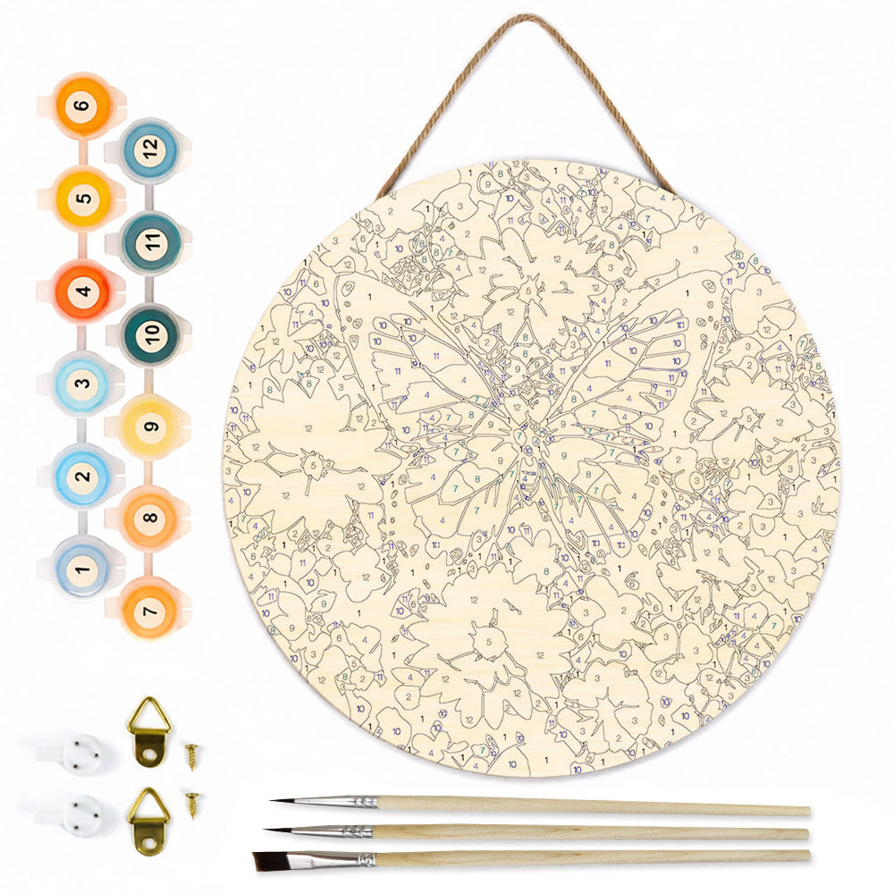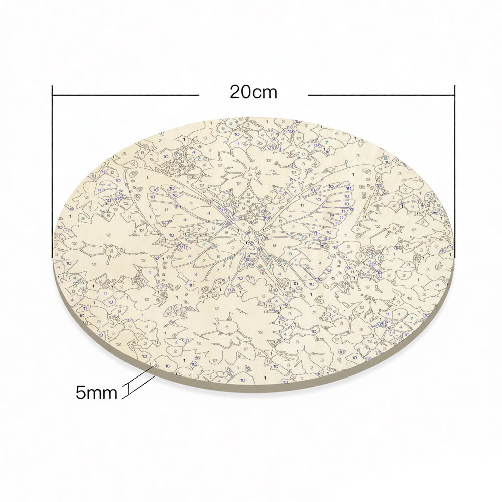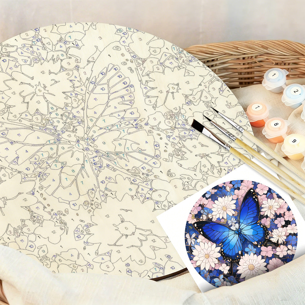 Paint by Numbers on Wood Slice - Blue Butterfly among the Flowers