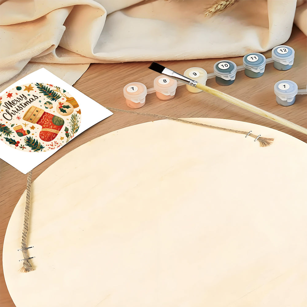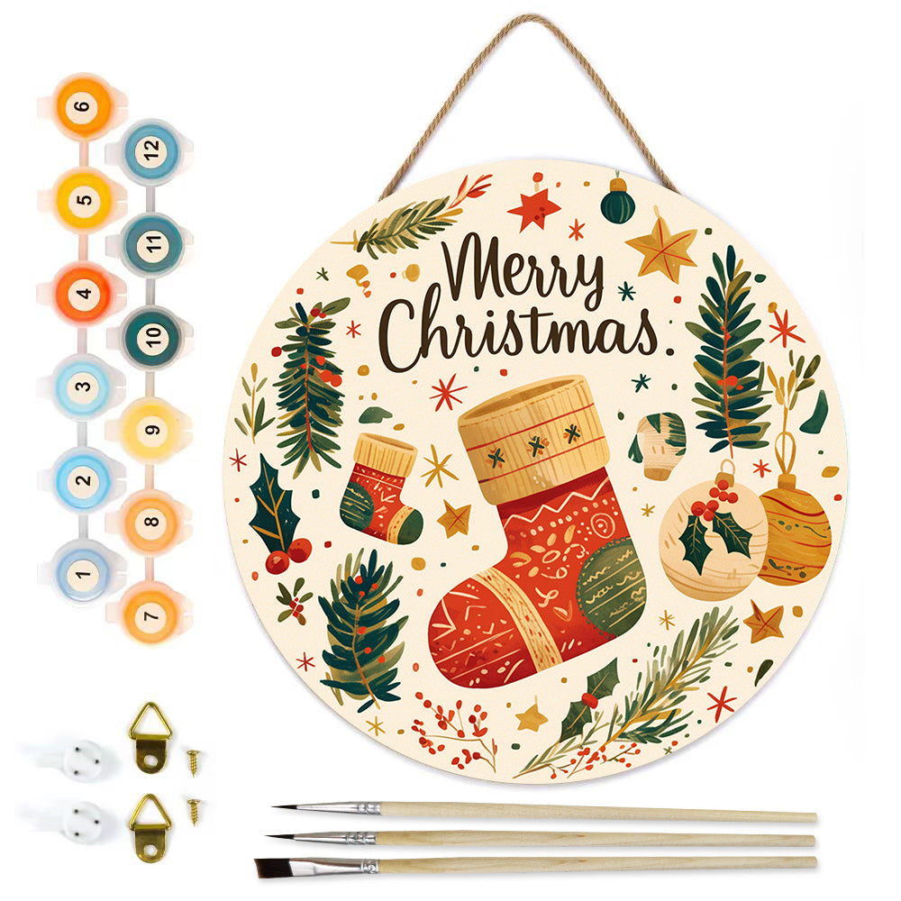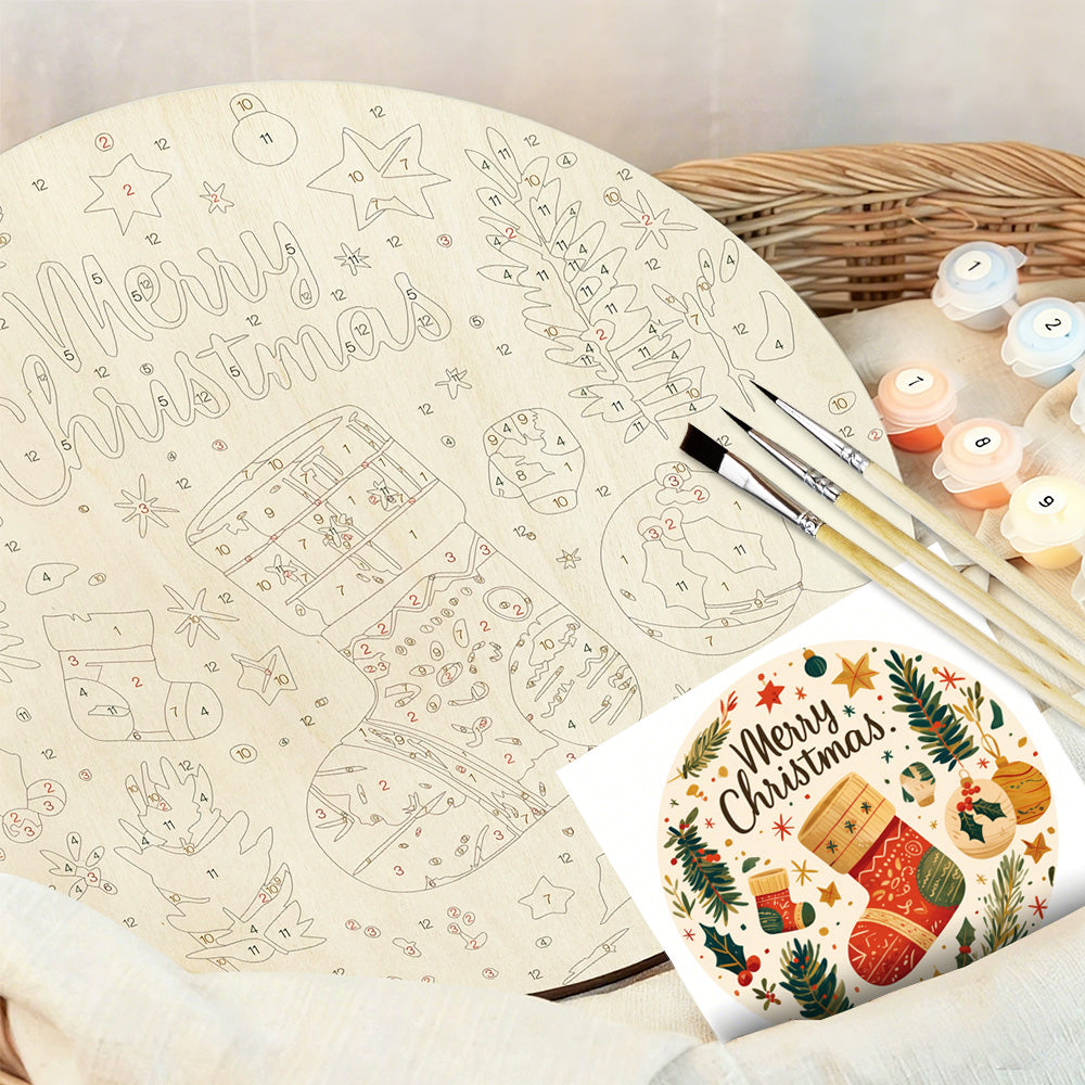 Paint by Numbers on Wood Slice - Christmas Stocking