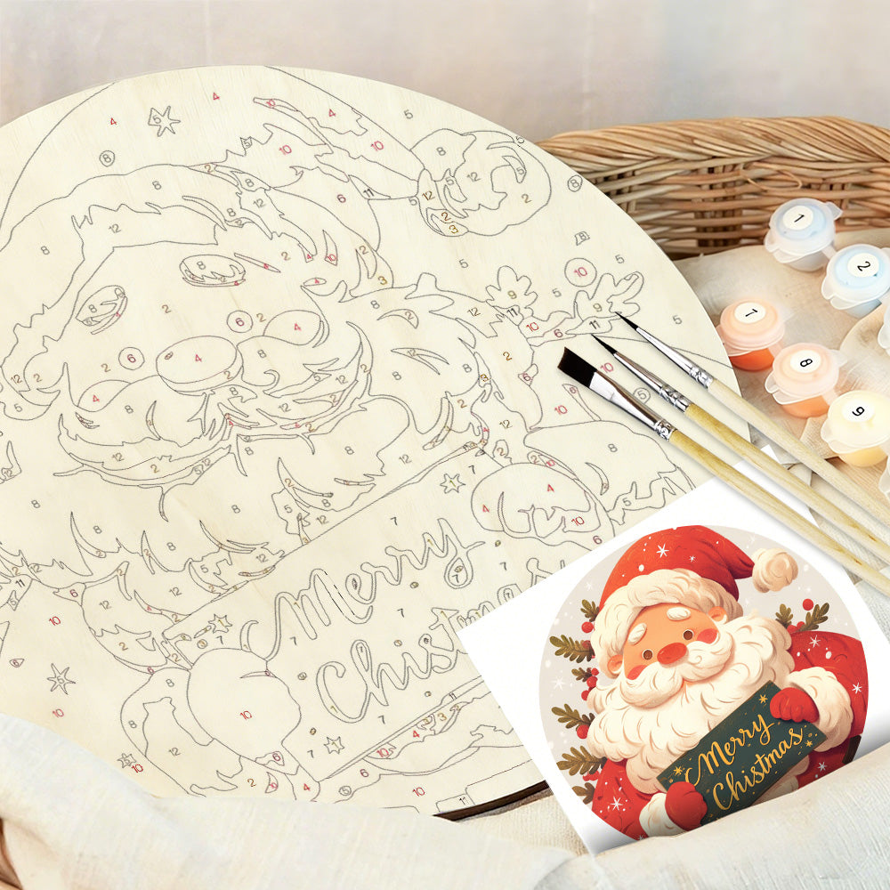 Paint by Numbers on Wood Slice - Santa Claus